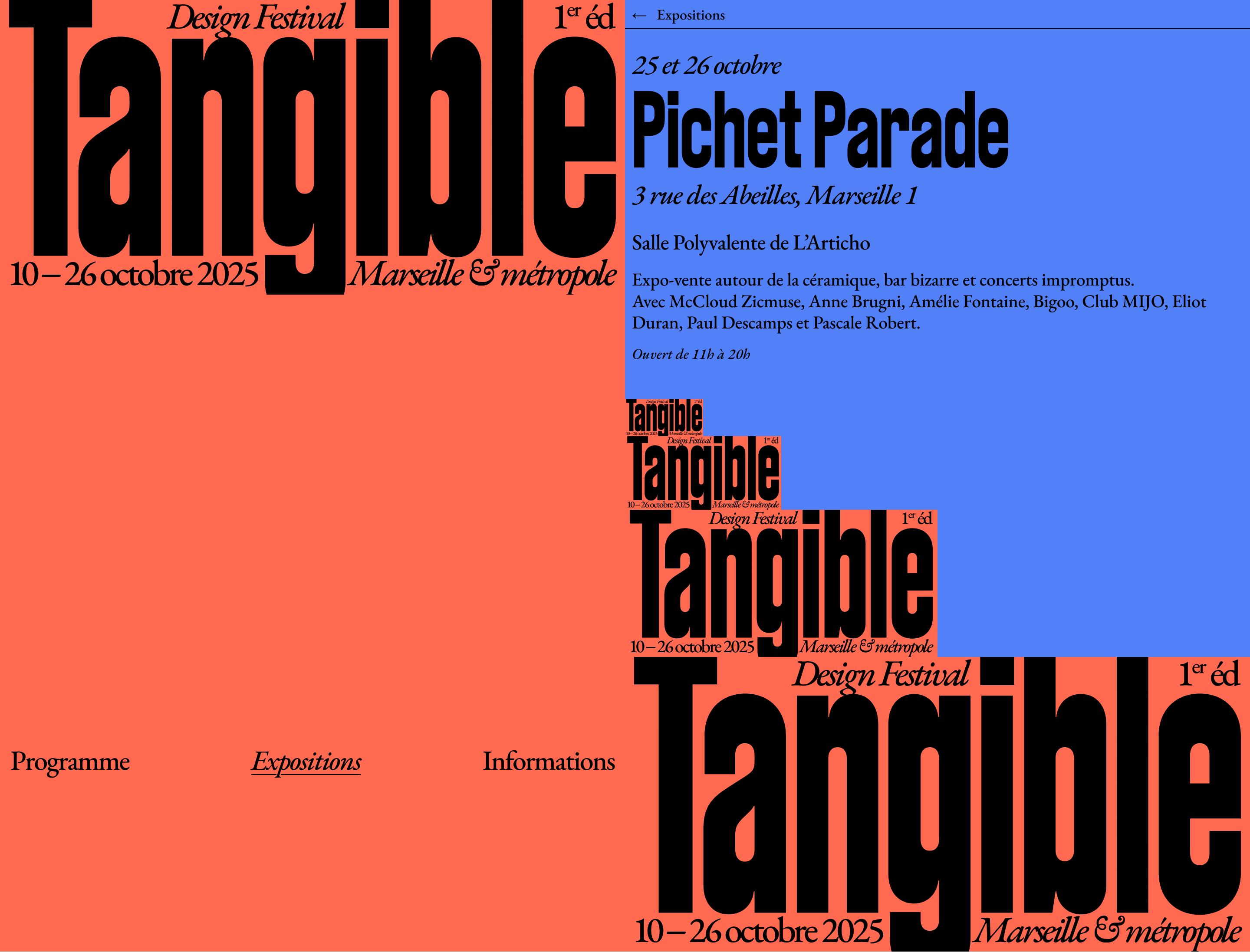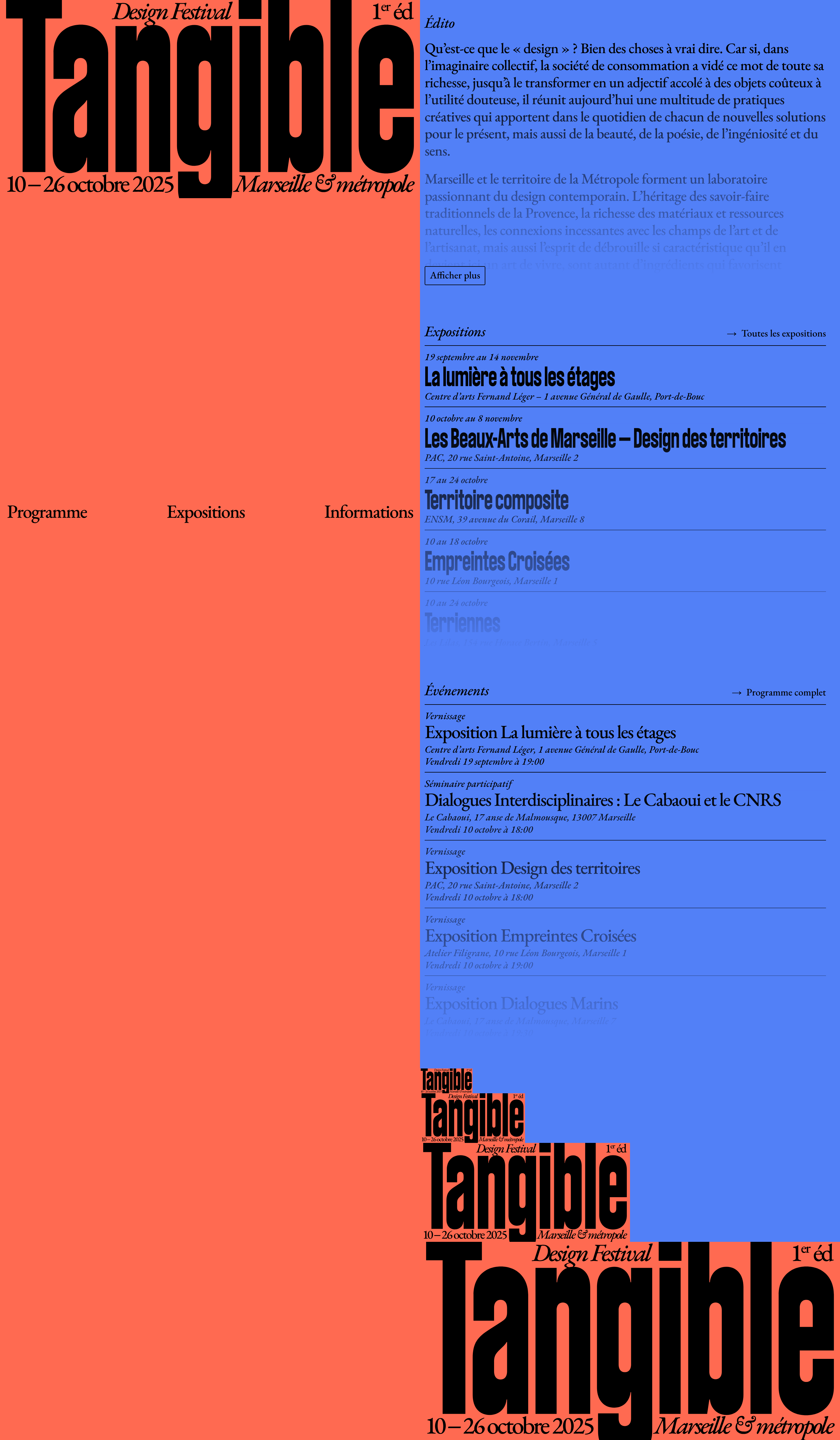 Tangible is a festival dedicated to all forms of design expression, offering a close look at local specificities. Supported by several partner organizations/designers from the Aix–Marseille–Provence metropolitan area and coordinated by the Fotokino association, it is conceived as a shared program promoting the visibility, promotion, and dissemination of design practices in the region.