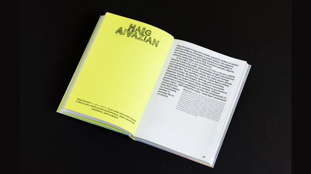 The New Visions catalog was edited by Susanne Østby Sæther. It includes a foreword by Caroline Ugelstad, a curatorial statement by Inga Lāce, Reem Shadid, and Susanne Østby Sæther, and an essay by scholar Eglė Rindzevičiūtė, in addition to artist presentations. Publishing by Henie Onstad Kunstsenter and Mousse Publishing.