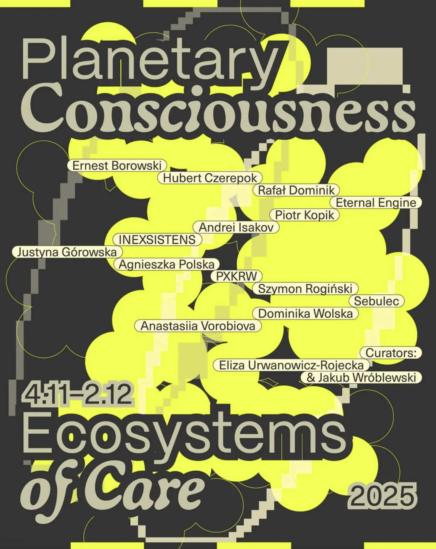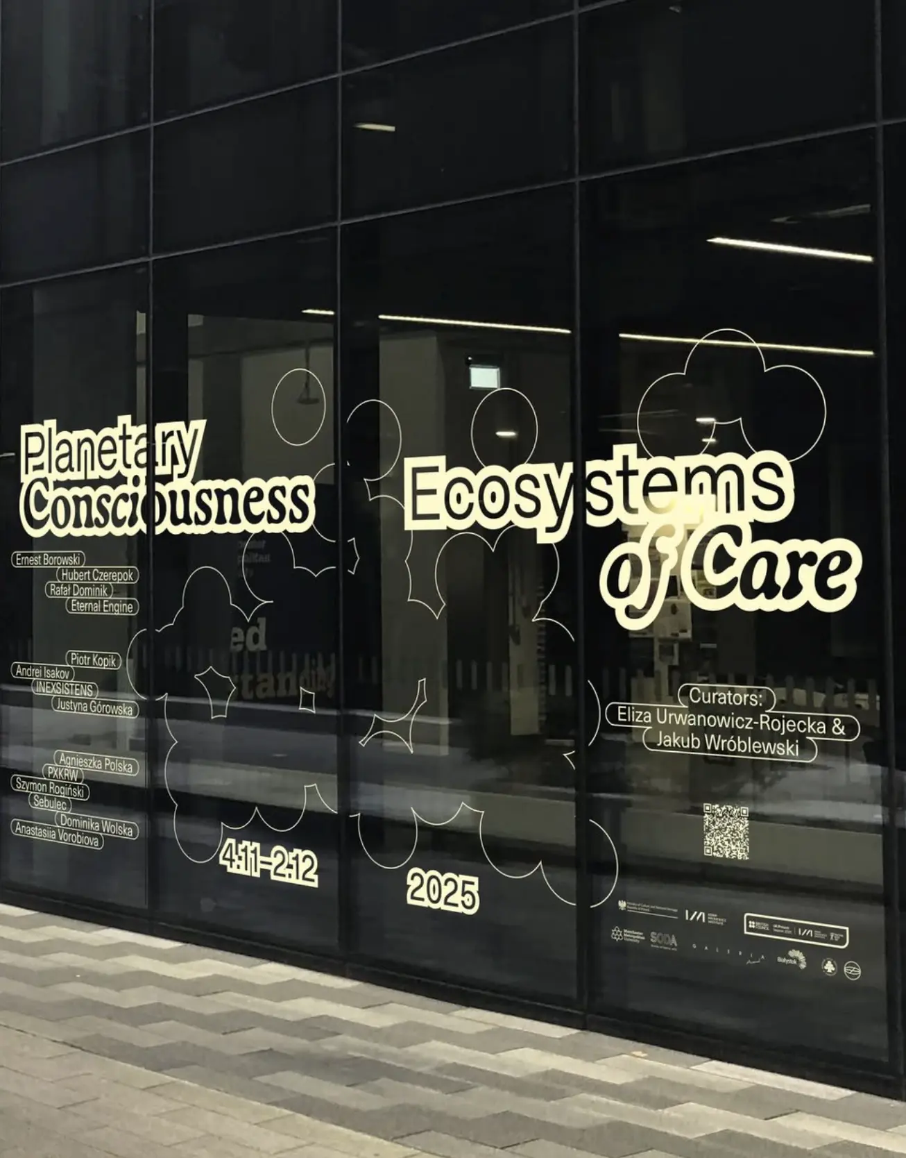 Renata Motyka has designed the visual identity for the exhibition Planetary Consciousness. Ecosystems of Care at the School of Digital Art, Manchester Metropolitan University. It was curated by Eliza Urwanowicz-Rojecka and Jakub Wróblewski.