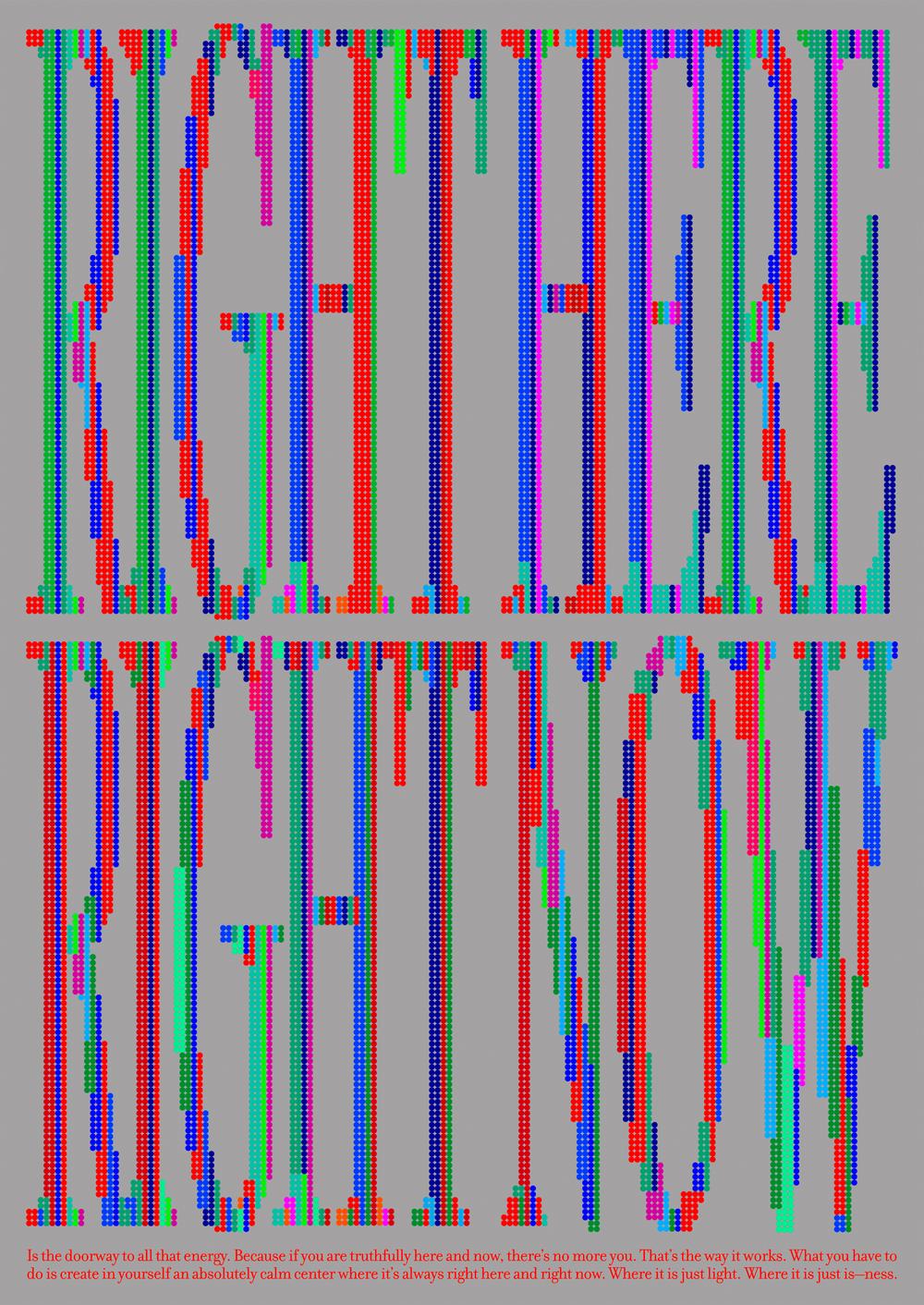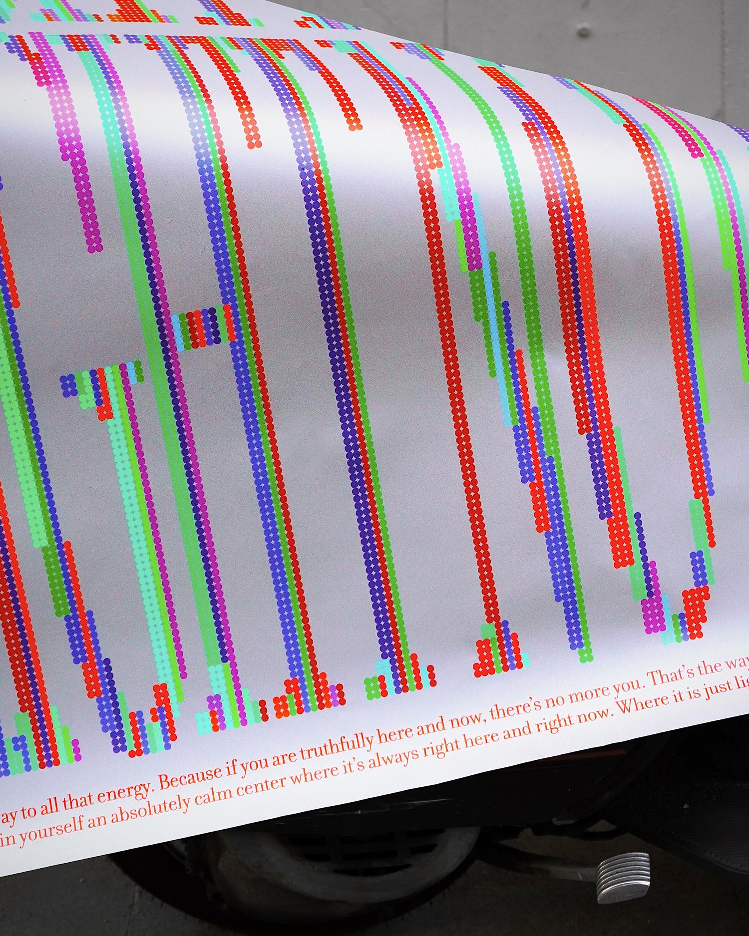 The design explores the idea of transforming a minimal element—a dot—into something expressive and meaningful. It proposes a visual reflection on the present moment, encouraging viewers to slow down, observe, and engage more deeply with what is happening now. The dots that construct the custom letterforms symbolize the multiplicity of experiences and possibilities that exist in the present.