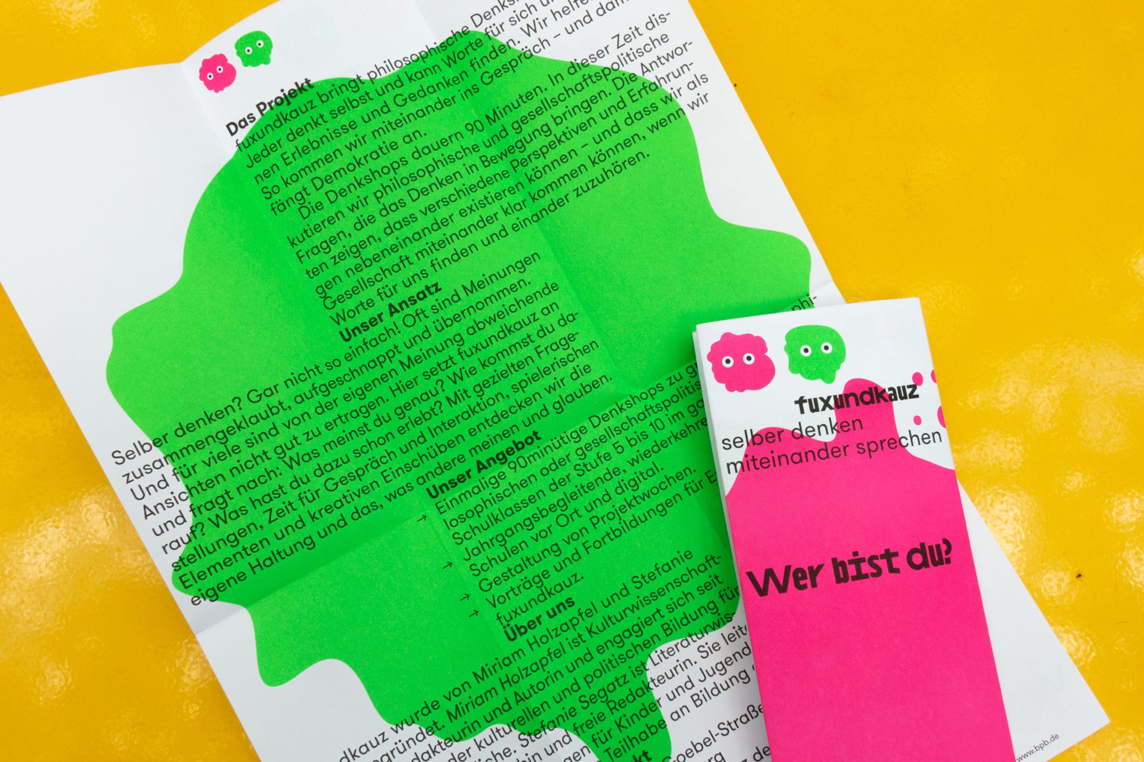 The visual identity translates this approach into simple, clear imagery – two individuals meet and engage in dialogue, showing that peaceful coexistence is perfectly possible even when you’re not cut from the same cloth. you just have to talk to one another. Here we have a clear statement from our two clients and, incidentally, not only political education but aesthetic training as well: being quirky can be beautiful; you don’t have to fit in.