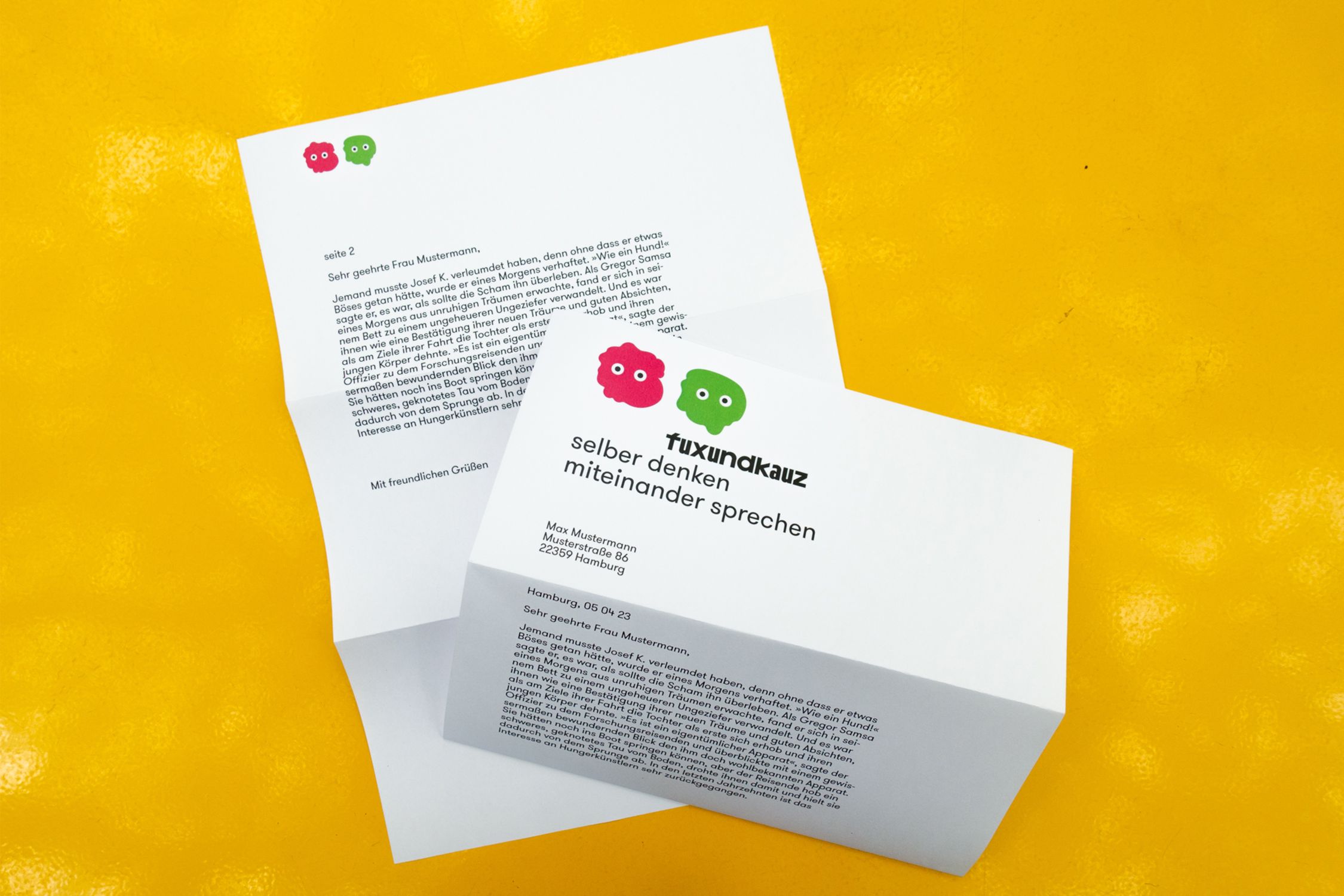Krasz and GT Walsheim are the typefaces used for the identity of fuxundkauz. From Büro Uebele: