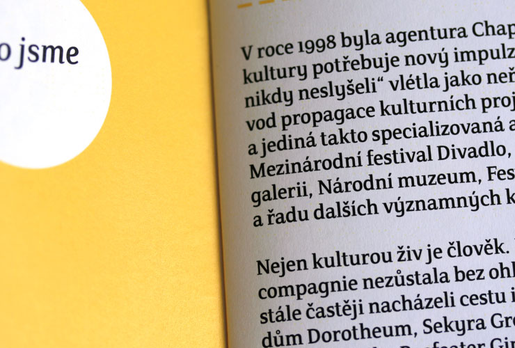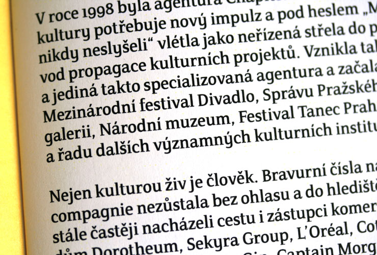 Czech designer Filip Blažek of Studio Designiq selected Crete as corporate typeface for the Czech company Chapiteau, a communication and advertising agency, with roots in designing for cultural institutions, such as the Czech National Museum or the Dance Festival Prague.