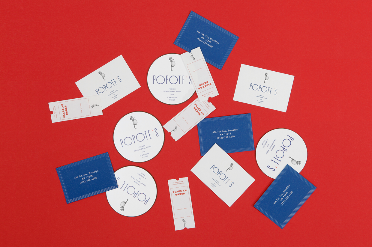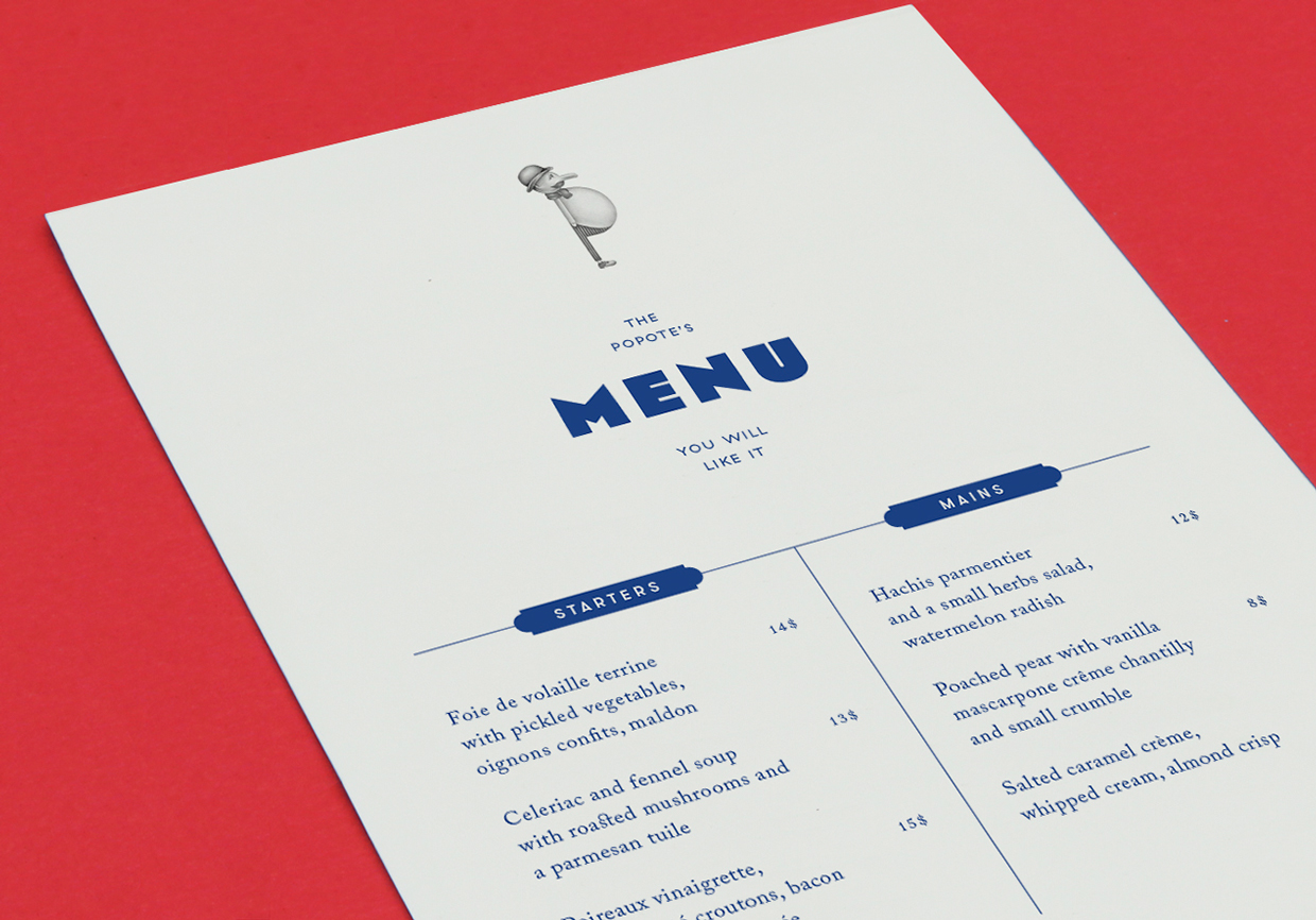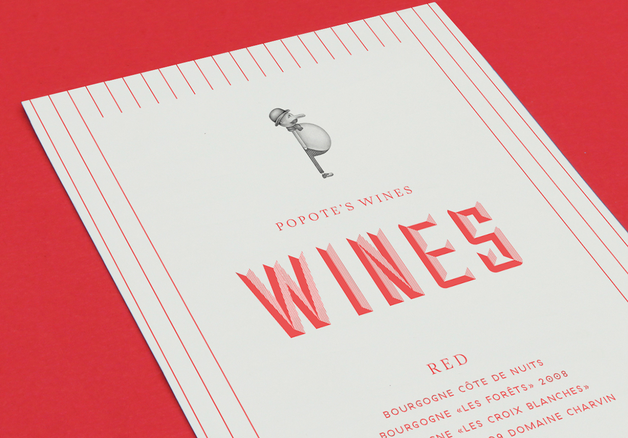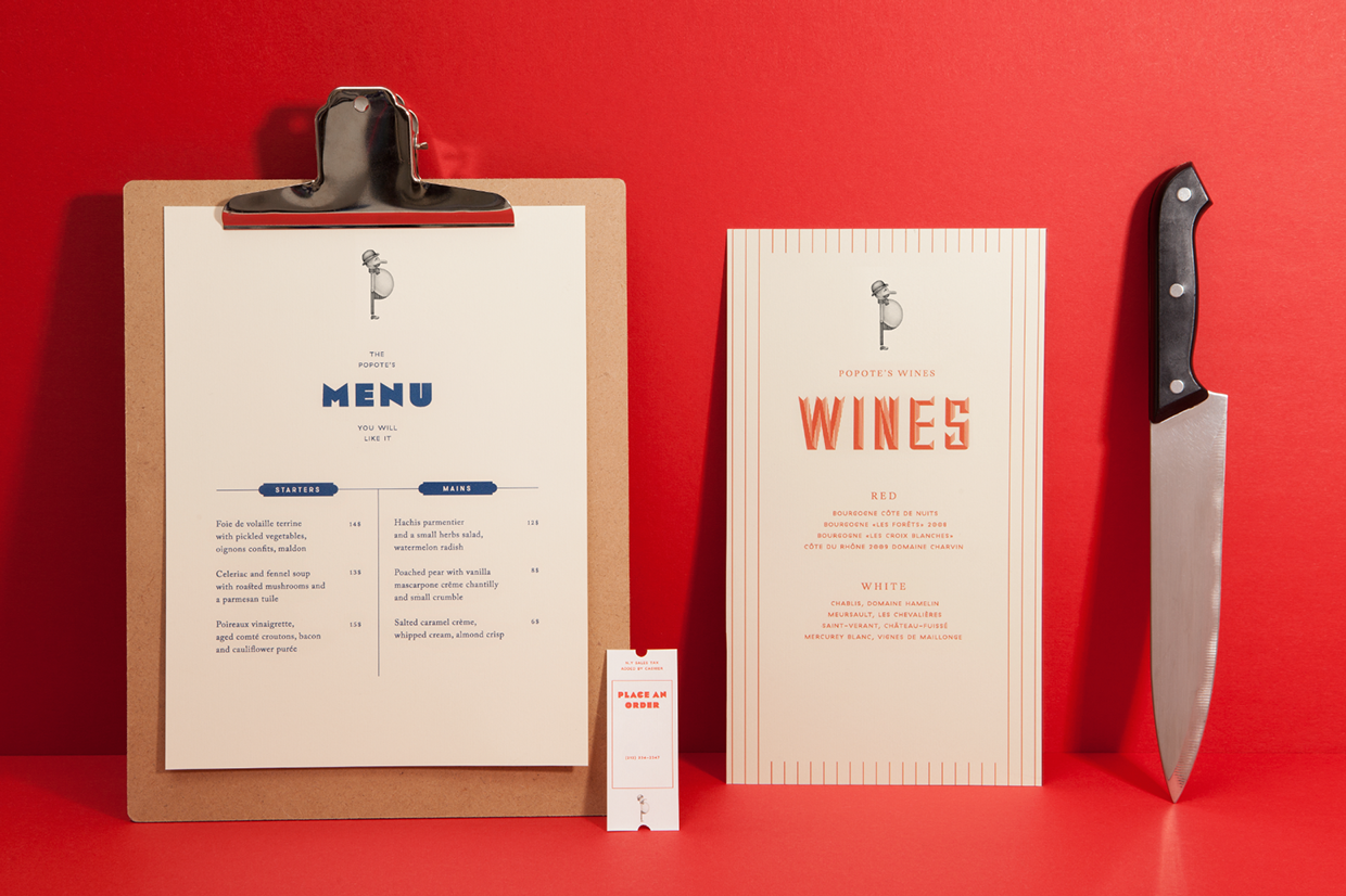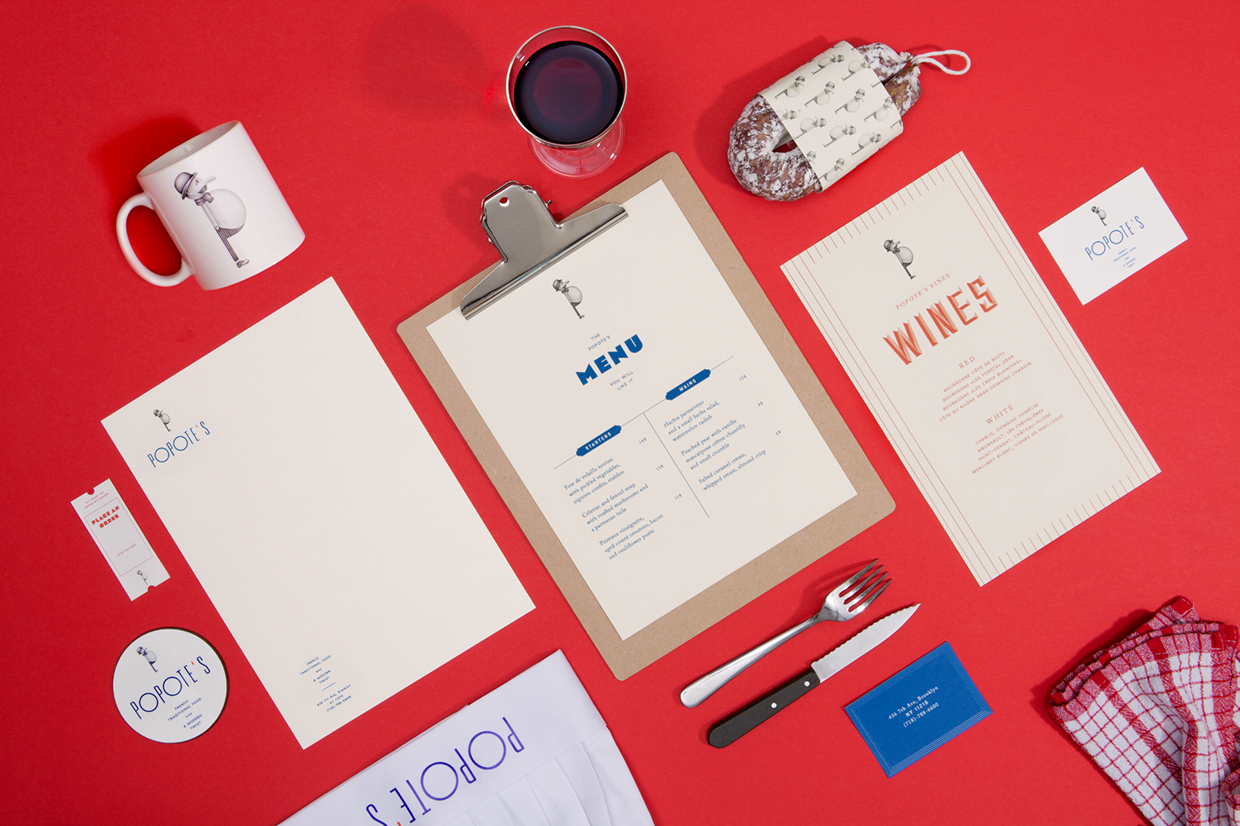 Paris-based Violaine & Jérémy designed this identity system for Popote’s, a French restaurant in Brooklyn. The logo Univers Ultra Condensed Thin with circles replacing the ‘O’s. It references a 1930s modernist aesthetic while also following the restaurant’s slogan: “French traditional food with a modern twist”. GT Haptik, an unusual geometric sans adds another twist and Eagle continues the Art Deco vibe. I’m unable to identify the serif type.