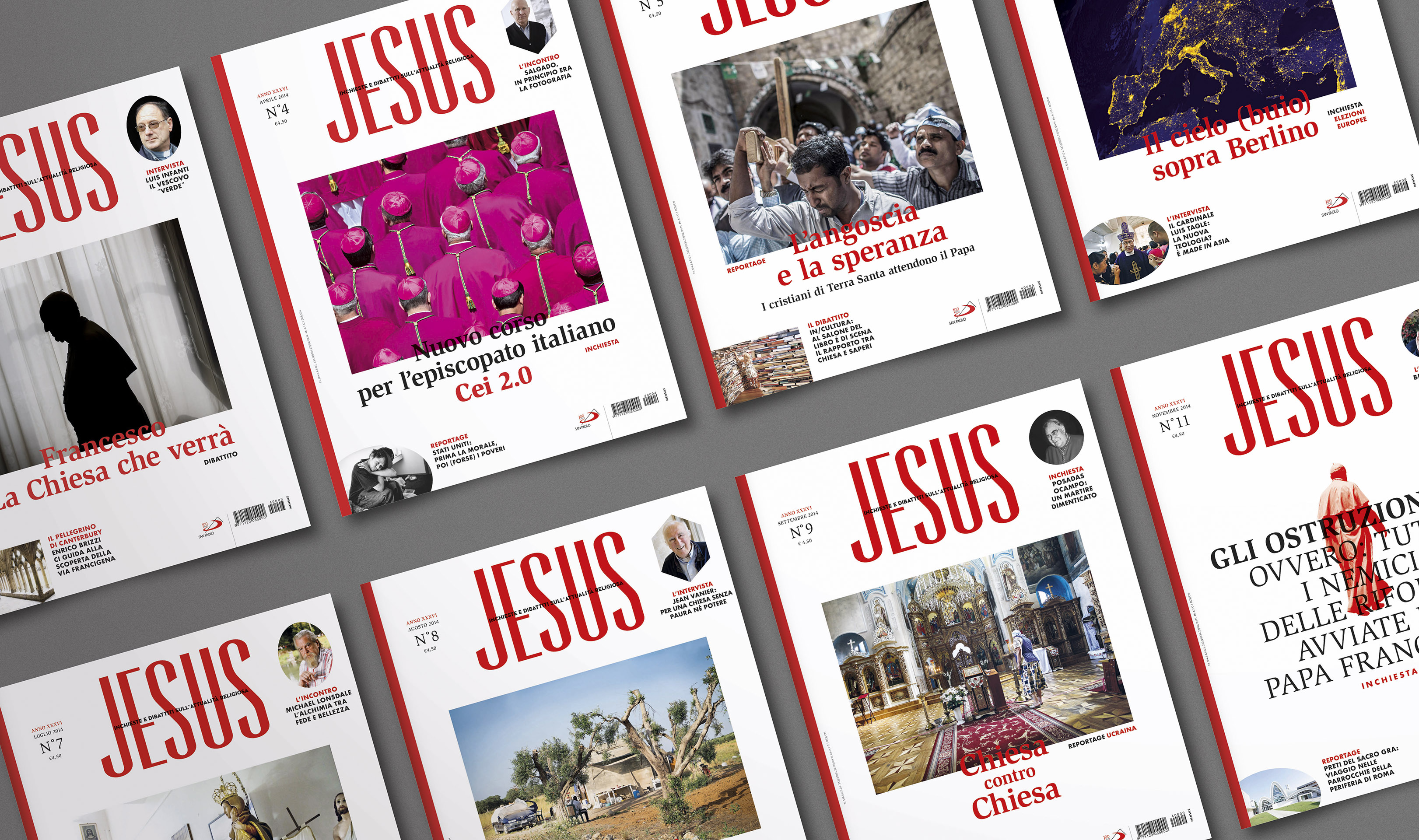 Jesus Magazine Contributed by Giacomo Traldi on Oct 31st, 2014. Artwork published in 2014. License: All Rights Reserved. Redesign of the 35 years old magazine Jesus, a catholic monthly about religious news and debate from all the world, published by Periodici San Paolo in Italy. Art Director: Luca Pitoni Redesigned by Giacomo Traldi & Luca Pitoni More images here and here. License: All Rights Reserved. License: All Rights Reserved. License: All Rights Reserved. License: All Rights Reserved. License: All Rights Reserved. Typefaces More about RetrofontGet RetrofontMore about ITC SlimbachGet ITC SlimbachMore about FF TundraMore about VendômeGet VendômeMore about NeutrafaceGet NeutrafaceMore about Futura Round (URW)Get Futura Round (URW) Formats Magazines/Periodicals (1882) Topics News (564) Religion/Spirituality (444) Designers/Agencies Luca Pitoni (5) Giacomo Traldi (2) Tagged withJesus Magazine (1)religion (52)Catholicism (42)magazine interiors (1155)magazine covers (1414)magazine logos (517) Artwork location Italy (1016) Milano (308) In Setssmooth (Karo Konieczna) (522)check (Shinjuku ysk) (7)sana (sana svyazhin) (5)word (zhang jiyue) (36) Post a comment Name Email – will not be published Website Your response Submit Comment More in News Växjö Lakers2016unknownContributed by Rosetta Gonzaï journal Nº12024Quentin HourieContributed by Quentin Hourie Staff Pick Les Arènes du Savoir2020Hadrien HerzogContributed by Production Type Sponsor More in Magazines/Periodicals TIME, Jul 30, 20072007Arthur HochsteinContributed by Stephen Coles Staff Pick bleib gesund magazinec. 2013wdvContributed by Martin Wenzel RoyalCorec. 2014The RodinaOffice of Hard WorkContributed by Swiss Typefaces Staff Pick Brasil Cinema Nº7 (1972) and Nº8 (1973)c. 1972Cia gráfica LuxContributed by Johann Freitas Staff Pick More Fonts In Use As We Are Now book jacket1973Ursula SuessContributed by Florian Hardwig Blog POC POC @ FOMU Antwerp2024KeenContributed by Production Type Staff Pick AGI Open 2011 Barcelona2011Astrid Stavro StudioContributed by Tânia Raposo Staff Pick La Rivolta degli studenti. Parlano i protagonisti book cover1968Anita KlinzGuido CarrerContributed by Stéphane Darricau Staff Pick Saut Hermès au Grand Palais 20192019PiloteContributed by Stephen Coles Staff Pick Ac Matkychtivý Čúra2018Matěj MartinecContributed by Matthijs Sluiter Staff Pick The Forever War by Joe Haldeman (Weidenfeld & Nicolson)1975Nick SuttonContributed by Florian Hardwig Staff Pick AskulStockholm Design LabContributed by Stephen Coles Staff Pick