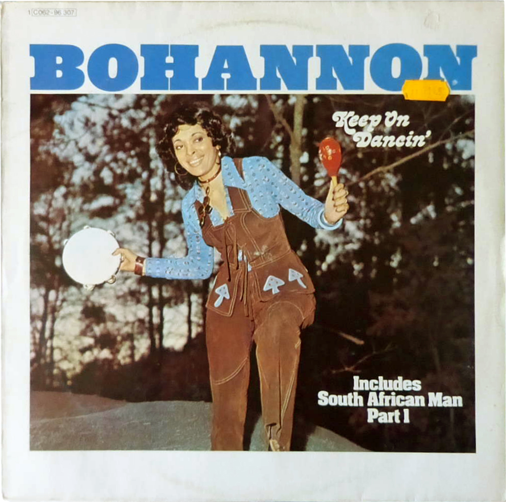 German pressing by EMI Electrola from 1974, with an added note about the included chart hit “South African Man” (#22 in UK), in Letraset Aachen (1969).