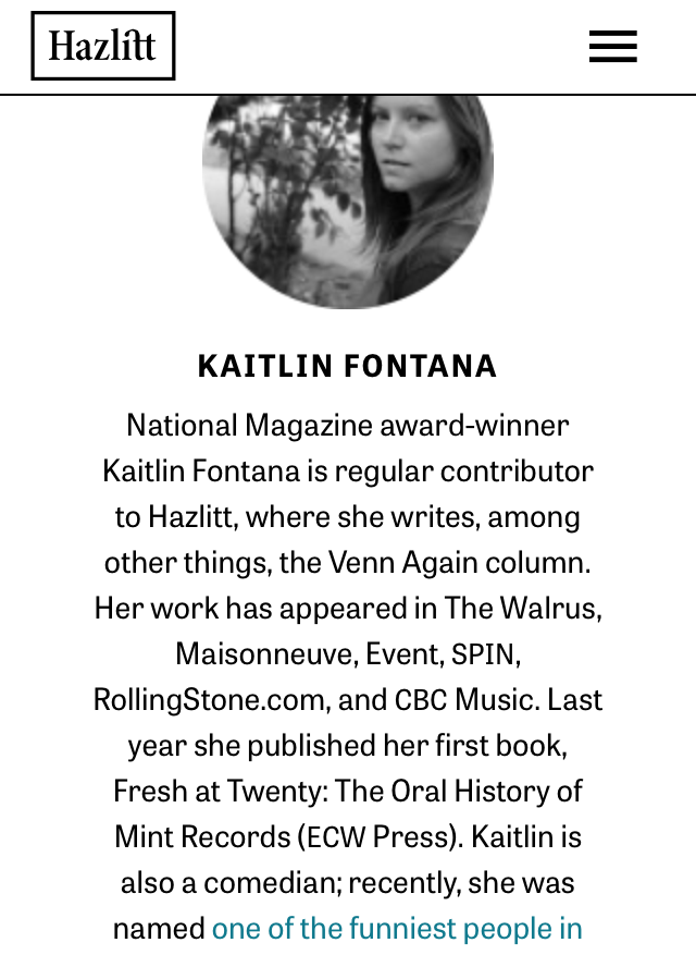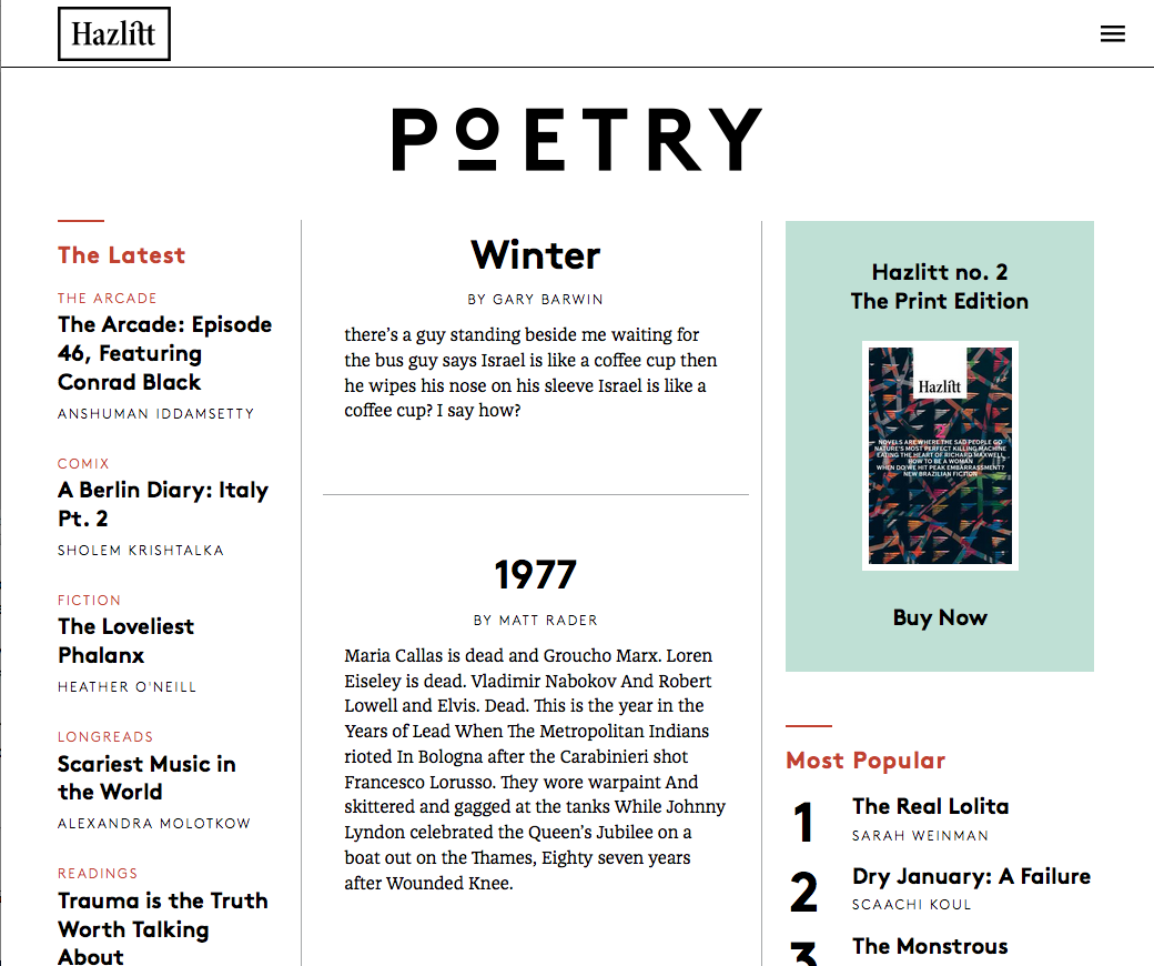 The Hazlitt is an online magazine by Random House of Canada. The platform is to strengthen the company’s new digital strategy by featuring original content from established and emerging writers, digital storytelling and commentary.