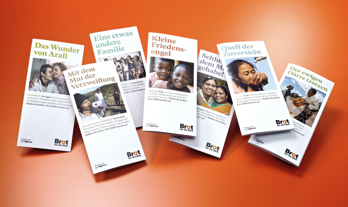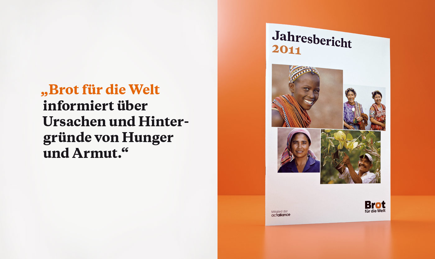 When Brot für die Welt merged with Evangelischer Entwicklungsdienst in 2011/2012, Factor Design overhauled the brand architecture and the visual identity and introduced the contemporary and sober Galaxy Copernicus as the main typeface.