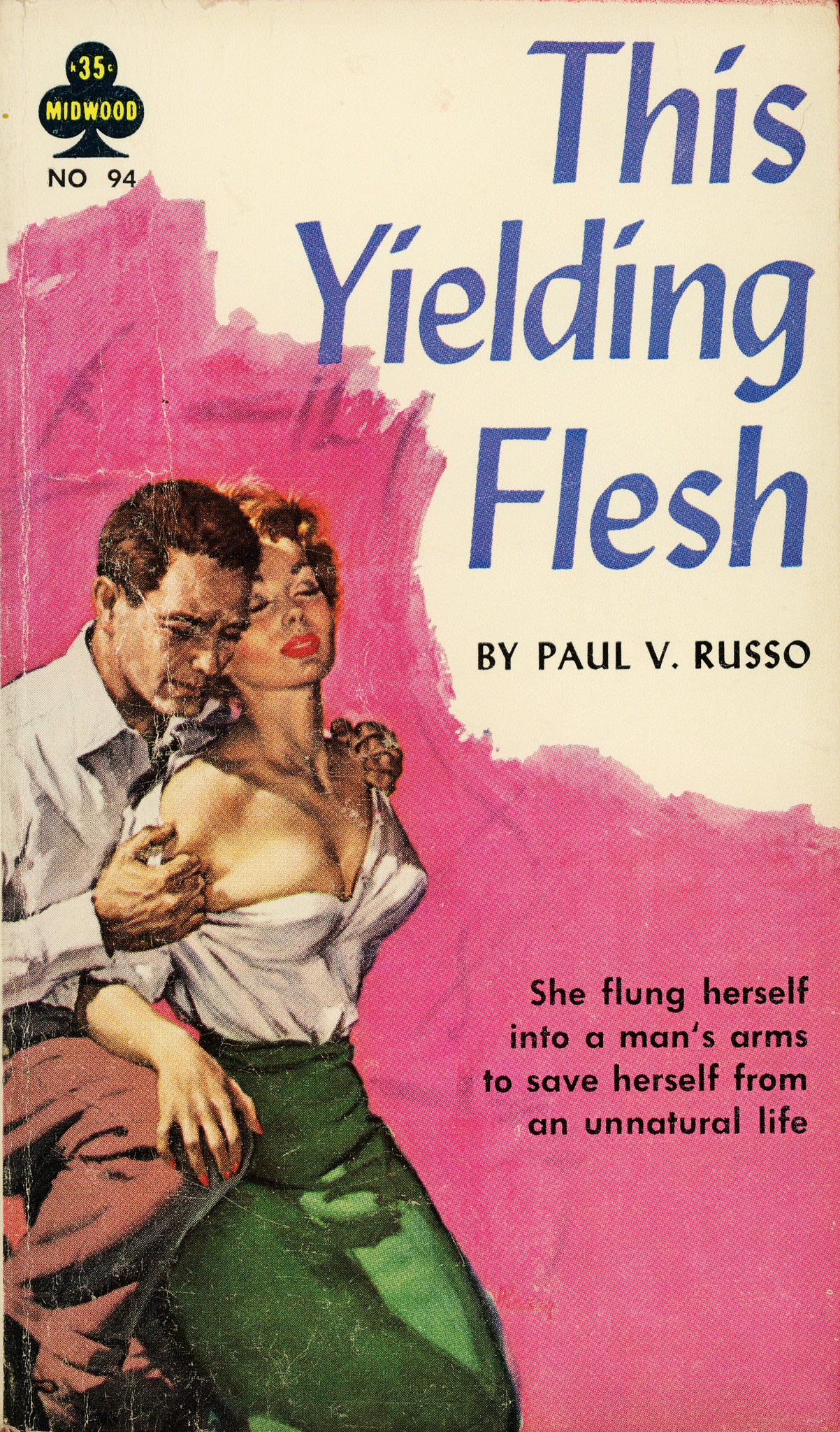 This Yielding Flesh by Paul V. Russo Photo(s) by Steve. Imported from Flickr on Jun 17, 2015. Artwork published in 1961. Source: www.flickr.com Uploaded to Flickr by Steve and tagged with “lydian”. License: All Rights Reserved. “She flung herself into a man’s arms to save herself from an unnatural life.” Midwood Books 94, 1961. Cover Artist: Paul Rader Paul V. Russo is a pseudonym of Gilbert Fox. Typefaces More about LydianGet LydianMore about FuturaGet Futura Formats Books (6459) Topics Literature (3000) Designers/Agencies Paul Rader (1) Tagged withbook covers (5800)paperbacks/softcovers (1946)pulp (81)Midwood Books (2)italics (692)right-aligned text (260)Gilbert FoxPaul V. Russopseudonyms (27) Artwork location United States (9822) Post a comment Name Email – will not be published Website Your response Submit Comment More Lydian in use The Hidden Flower by Pearl S. Buck (Cardinal)1959Charles BingerPhoto(s) by Bart Solenthaler on Flickr. Lake Mohonk Mountain House brochure1946Contributed by Stephen Coles The Adventures of Huckleberry Finn (Pocket Book, Jr.)1950Photo(s) by Steve on Flickr. Sponsor More in Literature The World’s Number One Flat-Out, All-Time Great, Stock Car Racing Book by Jerry Bledsoe (Bantam)1976unknownPhoto(s) by Make It Old on Flickr. Histoire et légende du Grand Monarque by Eric Muraise1978Atelier Pascal VerckenContributed by Fonts In Use Staff Sunrise on Mercury and Other Science Fiction Stories by Robert Silverberg (Thomas Nelson Inc., Publishers first edition)1975Bill MeyersContributed by Patrick Concannon Der purpurne Planet, fifth edition1986Contributed by Tânia Raposo More in Books How to Start Your Own Country2014Wang Zhi-Hong StudioContributed by bao Staff Pick Kein & Aber2023ScholtysikContributed by Scholtysik The X Factor by Andre Norton (Fawcett Crest)1981Ken BarrunknownContributed by Patrick Concannon The Inhabited Pathway. The Built Work of Alberto Ponis in Sardiniac. 2014Esther RieserContributed by Josh Finklea Staff Pick More Fonts In Use The Metrocard Project2011Melanie ChernockContributed by Stephen Coles Staff Pick CNEAI – Le Musée sans bâtiment posters2025Odilon CoutarelContributed by Lucas Descroix Staff Pick Diary of a Century – Jacques-Henri Lartigue1970Bea FeitlerContributed by Garrison Martin Staff Pick Abram Schlemowitz at Howard Wise Gallery exhibition posterc. 1961Chermayeff & GeismarContributed by Nick Sherman Staff Pick
